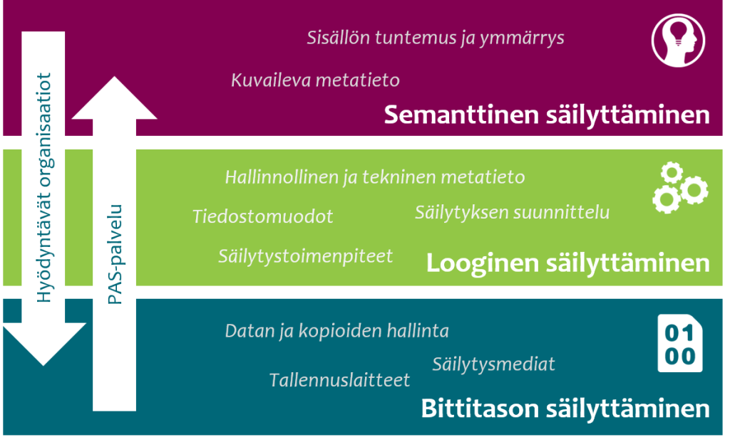 CSC:n tuottamat pitkäaikaissaatavuuden palvelut nojautuvat yhteiseen PAS-ratkaisuun. PAS-ratkaisu huolehtii datan säilytyksestä ja mahdollistaa datan säilymisen bittitasolla eheänä jopa vuosisatojen ajan. PAS-ratkaisu on pitkäaikaissäilytyksen perusta, jonka päälle voidaan rakentaa loogisen ja semanttisen säilyttämisen palveluita.